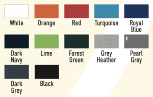 | Kleur | Forest Green, Pearl Grey, Royal Blue, Turquoise, Light Grey, Dark Grey, Red, White, Black, Lime, Navy, Orange |